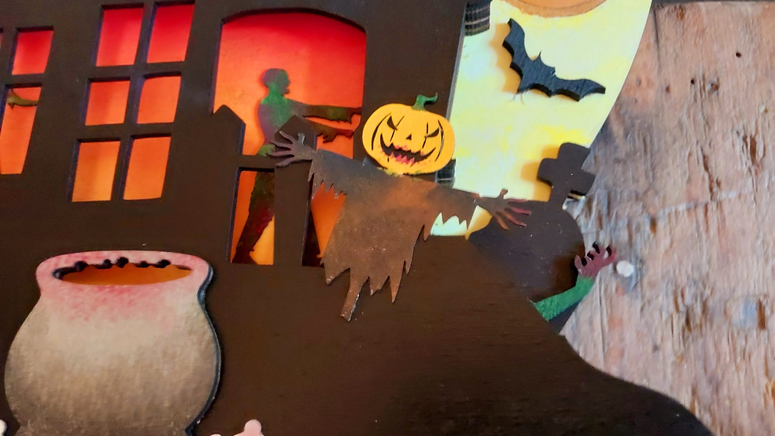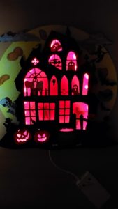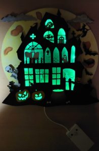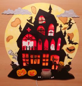 Hier präsentiere ich unsere Villa Grusula. Ein Familienprojekt im Zuge eines Laser-Wettbewerbs. Die Maße betragen ca. 40x40cm und ist für die wettergeschützte Haustür -bzw. Wohnungstür gedacht. Die Beleuchtung ist mittels mehrfarbiger LED gelöst, die via Infrarot auf Bewegungen reagiert und sich danach nach 20 Sekunden wieder abschaltet.